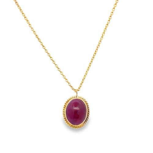 Estate 14kt Yellow Gold Ruby Cabochon Pendant Necklace
