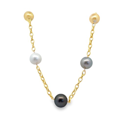 14kt Yellow Gold Multi Colored South Sea Pearl Tin Cup Necklace