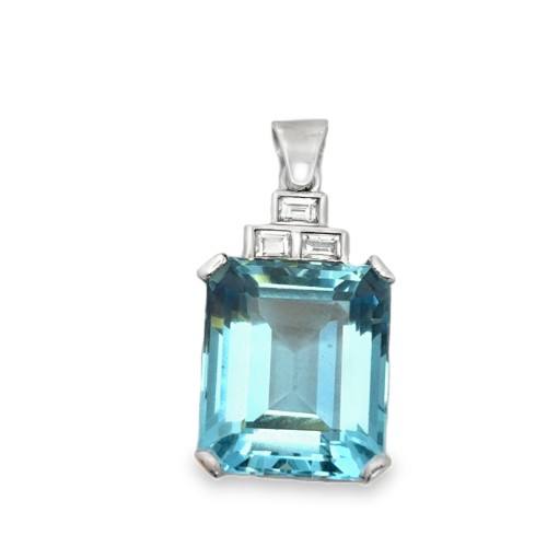 • Estate Mid-Century Platinum Aquamarine And Diamond Pendant
