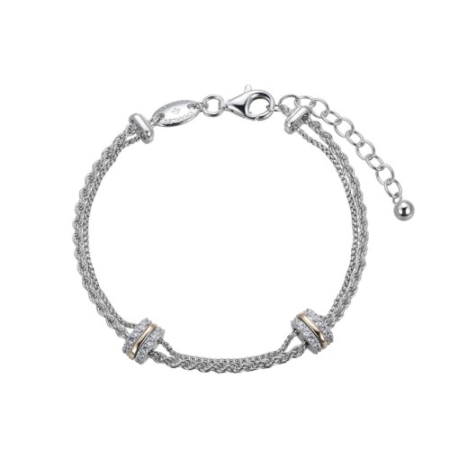 Charles Garnier Two-tone Sterling Silver CZ-accented Double-strand Bracelet