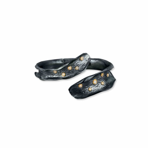 Lika Behar 24kt yellow gold and oxidized sterling silver "Bark' bracelet. This kick bracelet features eleven (11) full cut diamonds (11=0.31 ctw) bezel set in 24kt yellow gold scattered across the bracelet. DWT: 22.0