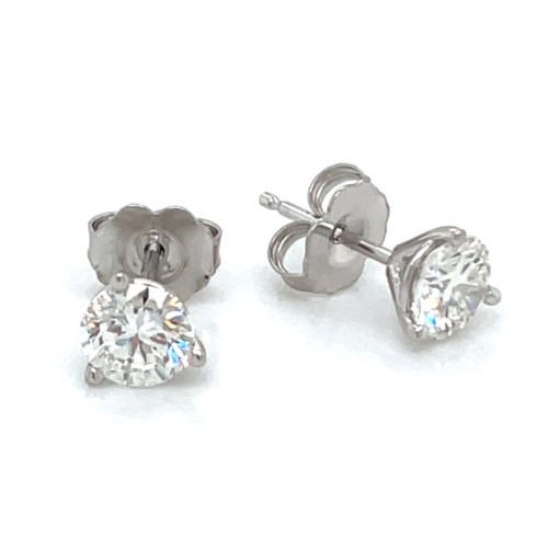 14kt White Gold 0.974 Carat Total Weight Round Diamond Stud Earrings